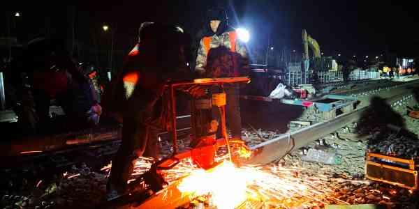 此次撥線工程軌道焊接作業南北端各1.3公里,12小時內焊接完成22個焊頭、凍結接頭制作16個、低溫應力放散800多米。